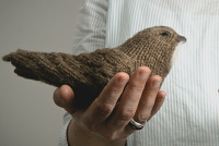'what Deirdre Nelsons knitted birds suggest is that playfulness and a courting of delight. coming at these weighty questions...